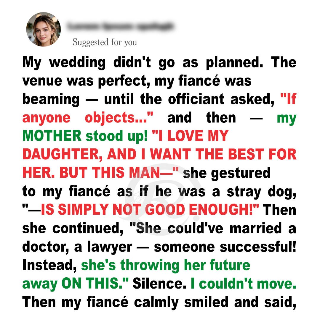 My Mother Objected at My Wedding, Saying, “This Man Is Not Good Enough!” — My Fiancé’s Response Made Her Run