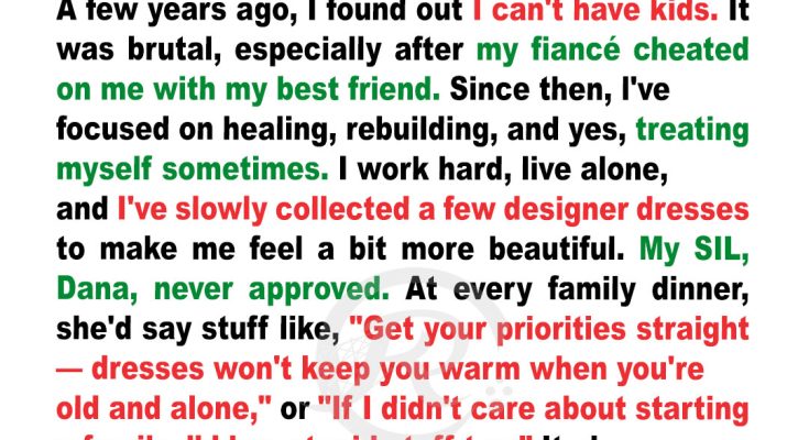 I’m 35, single, and childless — which apparently makes me the perfect target for judgment, especially from my sister-in-law, Dana.