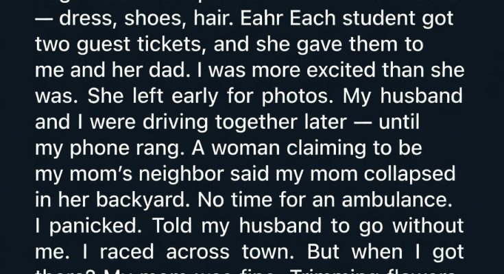 When I confronted Joe and Peggy outside afterward, Peggy shrugged it off. She admitted she called me — fabricated my mom’s emergency — just to make sure she and Joe got the best seats. She even smiled about how beautifully it all worked out.