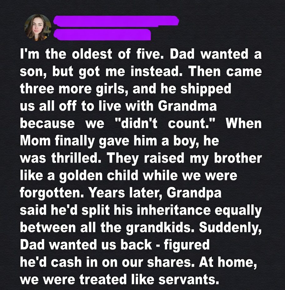 My father dumped me and my three sisters like we were junk mail, all because we weren’t boys. When I got older, I made sure he regretted it in a way he never saw coming — and it involved lawyers and courtrooms.