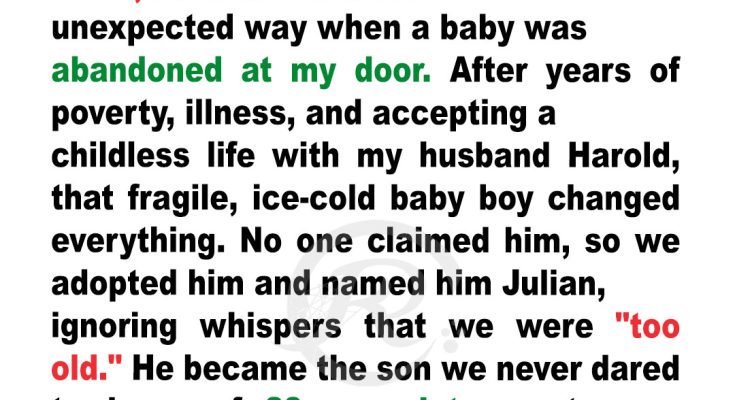 I’m Eleanor, 79 now, and my husband Harold is 81. We’d lived a quiet life — retired, simple, and without children by choice and then by circumstance. When I was in my 50s, a health crisis took us by surprise and the dream of becoming parents slipped away forever.