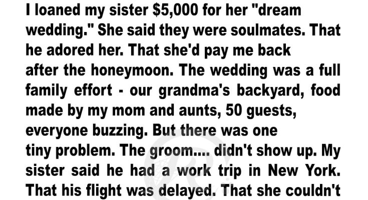 Then came the request: five thousand dollars to cover wedding costs. I hesitated — this was my house fund — but I saw the tears, the hope in her eyes, and agreed. Mom and our aunts rallied to help with food and decorations in Grandma’s big backyard. Everything looked magical on the day of the ceremony.
